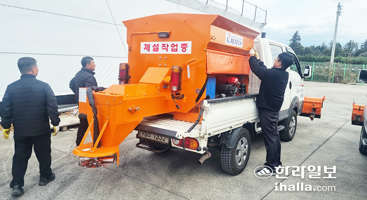 서귀포시 남원읍(읍장 고권우)은 지난 19일 남원읍 제설전진기지에서 동절기 도로 제설 담당 공무원들의 제설 장비 점검 및 유지관리 노고를 격려하며 안전사고 예방과 사전 제설을 당부했다.