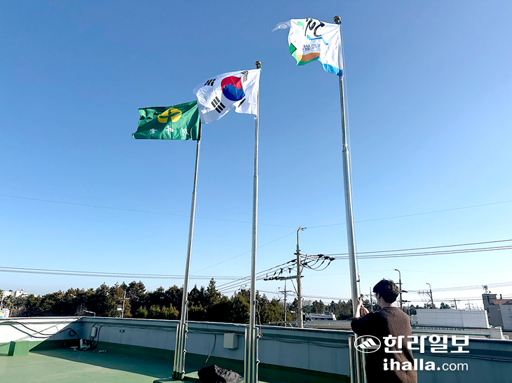 서홍동 태극기·제주도기 정비 실시