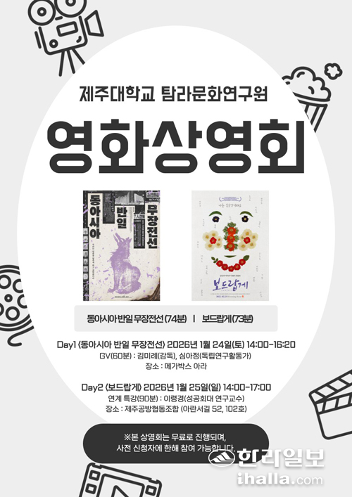 제주대학교 탐라문화연구원은 제주대학교 국립대학육성사업의 일환으로 '제주학의 재조명'을 주제로 한 영화상영회를 오는 24일과 25일 양일간 개최한다.