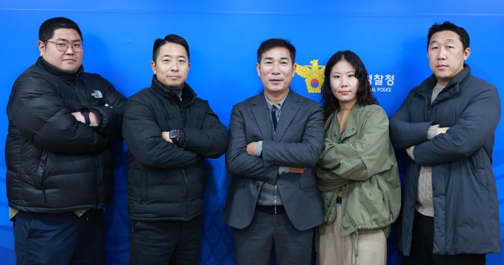 제주경찰청 마약수사대. (사진 왼쪽부터) 경장 김영우, 경위 이상헌, 경감 고정철, 경사 김승미, 경위 강훈진. 제주경찰청 제공