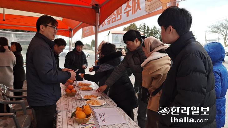 [한라일보] 올해부터 무관세로 수입되는 미국산 만다린에 대응해 제주 만감류의 품질 경쟁력을 검증하는 자리가 마련됐다. (사)제주국제감귤박람회조직위원회(이하 조직위)는 지난 20일 휴애리자연생활공원에서 '제주 만감류 시식회'를 개최했다고 21일 밝혔다.