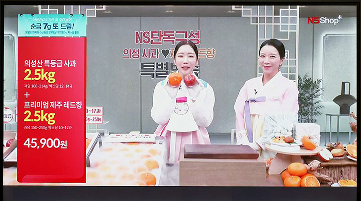 제주시와 경북 의성군은 지난 20일 NS홈쇼핑을 통해 '제주시 레드향-의성군 사과' 첫 공동 판매 방송을 진행했다.