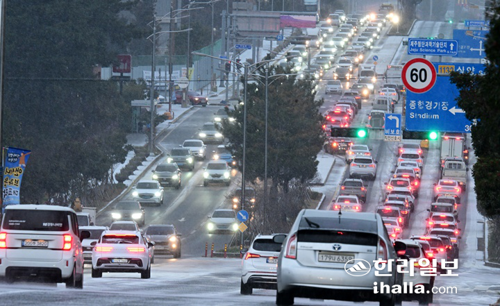 눈 날씨 속 제주 교통정보센터 홈페이지 한때 먹통