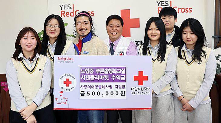 노형중학교 푸른솔 행복교실(교사 김상요) 학생들은 최근 플리마켓을 자발적으로 운영해 얻은 수익금 50만원을 대한적십자사 제주특별자치도지사(회장 정태근)에 전달하며 따뜻한 나눔을 실천했다.