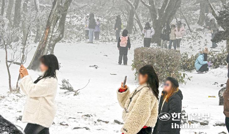 [한라일보] 설국이 된 1100고지25일 많은 눈이 쌓인 한라산 1100고지를 찾은 관광객들이 제주의 겨울 정취를 즐기고 있다. 강희만기자