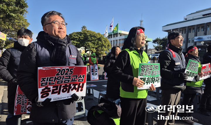 [한라일보] 제주지역 교육공무직 노동조합이 명절휴가비 정률제 도입을 요구하며 설 연휴 이전 집단임금교섭 타결을 촉구했다.