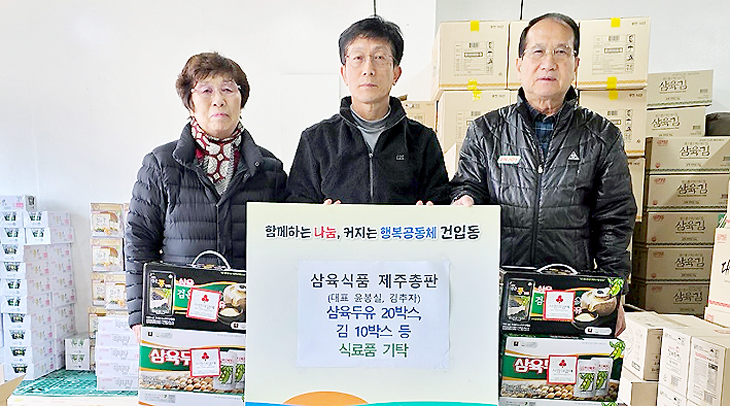 삼육식품 제주총판(대표 윤봉실·김추자)은 지난 28일 건입동 내 취약계층 지원을 위해 건강두유 20박스와 김세트 10개(총 40만원 상당)를 건입동주민센터(동장 김미성)에 기탁했다.