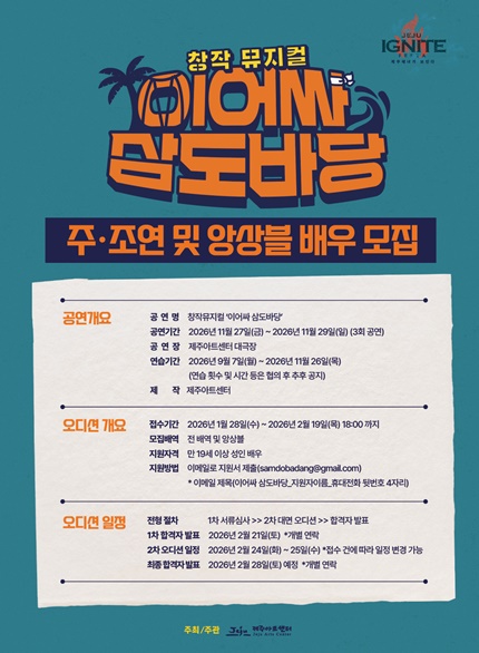 이에 제주아트센터는 뮤지컬 '이어싸 삼도바당'에 참여할 배우를 모집한다.