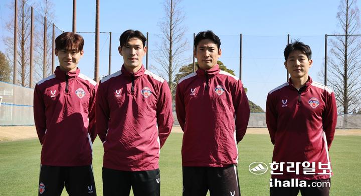 2026시즌 비상을 준비하는 제주SK 주장단. 왼쪽부터 김륜성 이창민 정운 남태희. 제주SK 제공