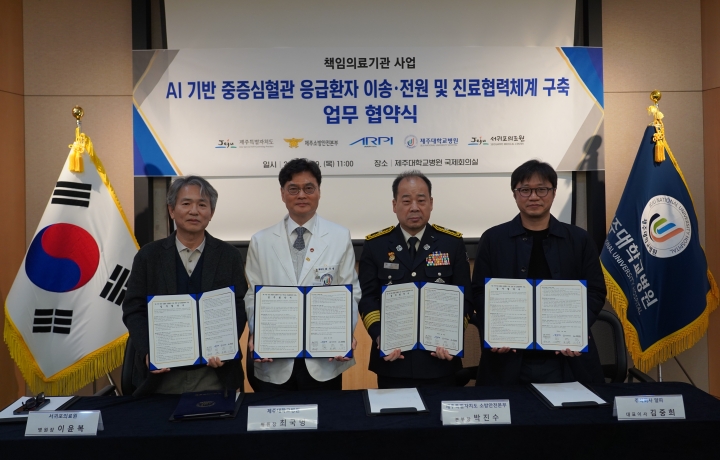 [한라일보] 제주소방안전본부는 제주대학교병원, 서귀포의료원, ㈜알피와 함께 중증 심혈관 응급환자의 신속한 치료와 생존율 향상을 위한 업무협약(MOU)을 체결했다고 29일 밝혔다.