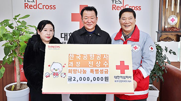 한국공항공사 전상수 과장은 최근 지역사회 나눔에 기여하고자 대한적십자사 제주특별자치도지사(회장 정태근)에 희망나눔 특별성금 200만원을 기탁했다.