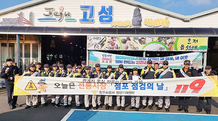 제주동부소방서 성산119센터(센터장 고창준)와 성산의용소방대(대장 박우철·홍순미)는 29일 성산읍 고성오일시장에서 겨울철 화재예방 캠페인을 실시하였다.