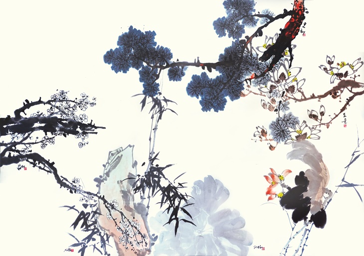 이번 전시에서는 '달항아리, 마음을 담다', '문인화, 오늘의 시선', '문인화로 그린 새와 꽃', '문인화의 묵향', '연꽃이 머문 자리' 등 서로 다른 주제를 갖고 각자의 시선으로 사유·미감·삶의 태도를 묵향으로 표현한 문인화 작품 50여 점을 선보인다. 또 이들이 함께 그린 가로 3m, 세로2m의 대작 합작도 '다시 함께'도 전시된다.