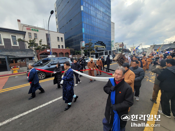 | 오후 제주시 관덕정 일원에서 이어진 '낭쉐몰이'. 박소정 기자 cosorong@ihalla.com |