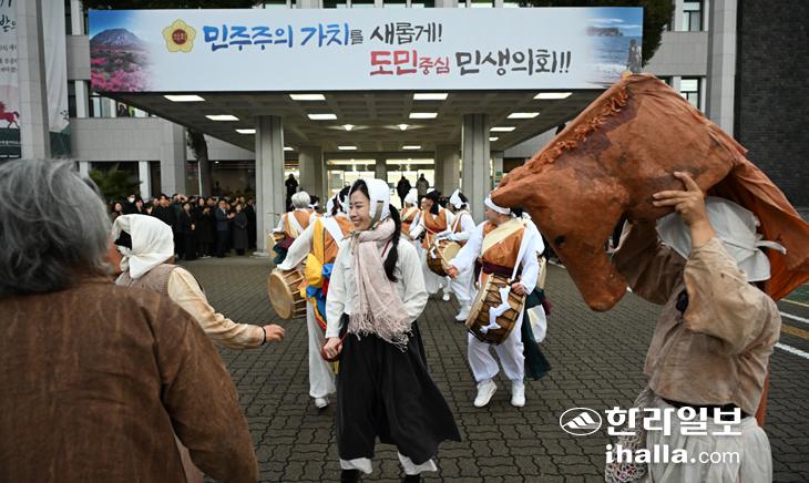 올해 '탐라국 입춘굿'은 '날 베롱 땅 움짝, 봄이 들썩!'을 슬로건으로 한 해의 풍요와 무사안녕을 기원한다. 지난달 20일부터 30일까지 10일간 이어진 '입춘맞이'로 시작해 이날 본행사에 들어간 '탐라국 입춘굿'은 첫날부터 신명나는 '거리굿'으로 떠들썩했다.