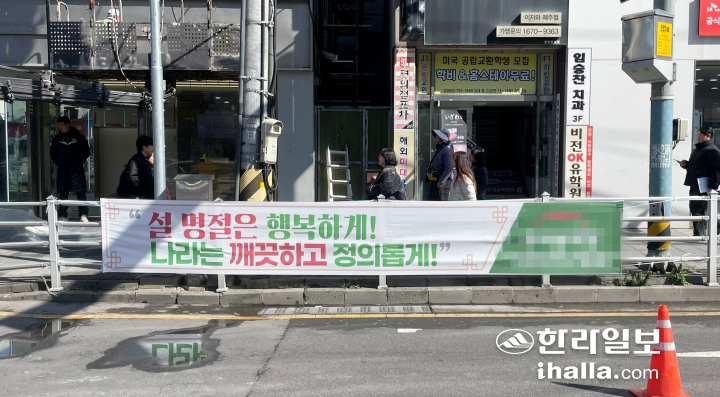 한편 제주시는 설 연휴와 지방선거를 앞두고 불법 현수막 게시가 증가할 것으로 예상됨에 따라 9일부터 20일까지 불법 현수막 특별점검을 실시한다.