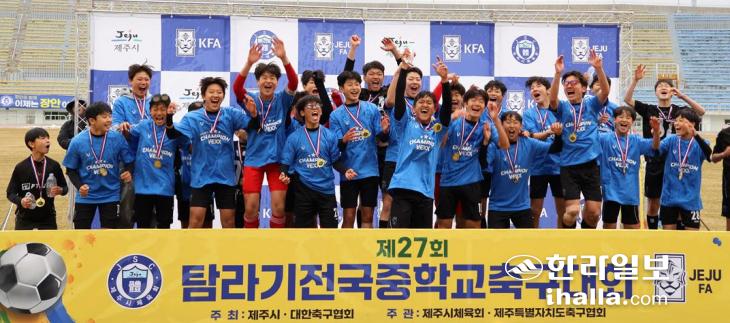 [한라일보] 올해로 27주년을 맞은 탐라기전국중학교축구대회가 '경기평택유나이티드U15'와 '경기경민위자드U15'의 최종 우승으로 막을 내렸다.