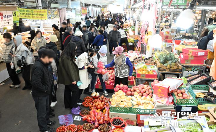 [한라일보] 설을 앞둔 12일 장이 열린 제주시민속오일시장에 제수용품 등을 구입하려는 시민들의 발길이 이어졌다. 강희만기자