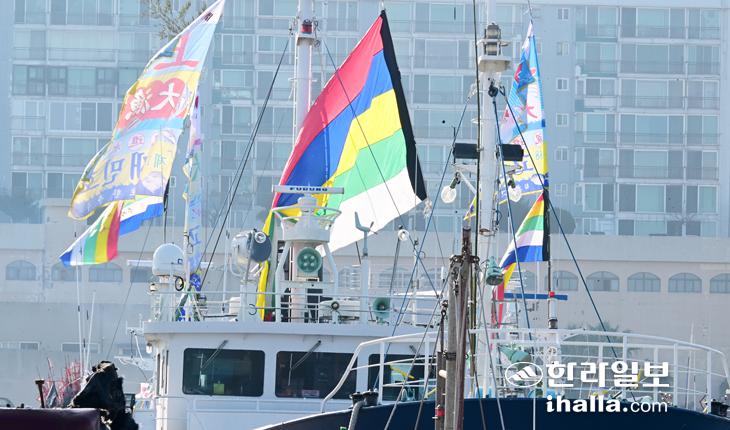 [한라일보] 설 연휴인 지난 15일 제주시 제주항 어선부두에 정박 중인 어선마다 선원들의 무사안녕과 풍어를 기원하는 만선기가 펄럭이고 있다. 강희만기자