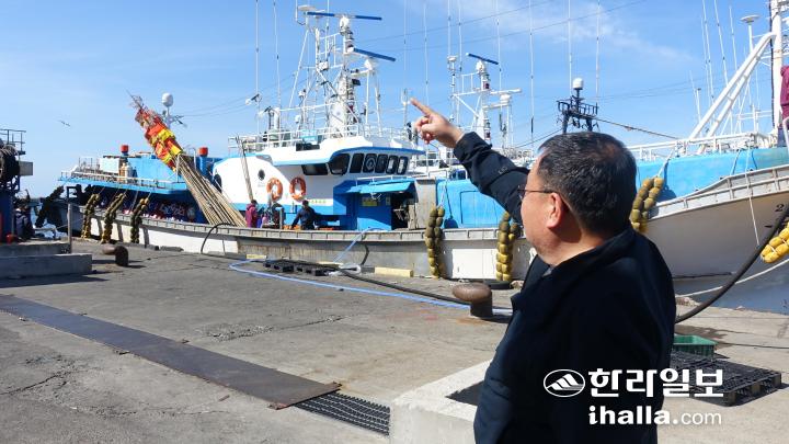 19일 오전 한림항에서 만난 김정철 한림어선주협회 회장은 "풍력발전기가 추가로 설치될 해역은 선박들의 주된 항로이자 황금어장이다. 한림항에서 입출항하는 선박만 따져도 매년 4만 척, 하루에 200척이 넘게 이용하고 있다"며 "그럼에도 한림항 어선주들과 협의도 없이 진행되고 있어 도에 반대 공문을 보낸 상황"이라고 말했다.