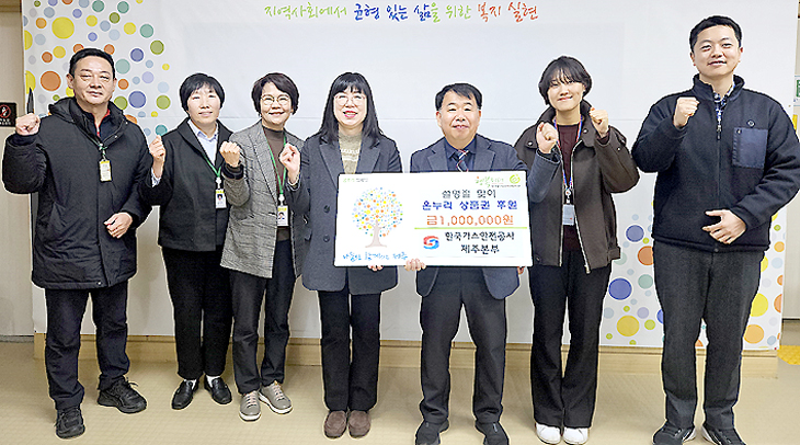 한국가스안전공사 제주본부(본부장 배재영)는 설 명절을 맞아 취약계층 지원을 위한 온누리 상품권 100만원을 지난 12일 제주특별자치도장애인종합복지관(관장 고경희)에 전달했다.