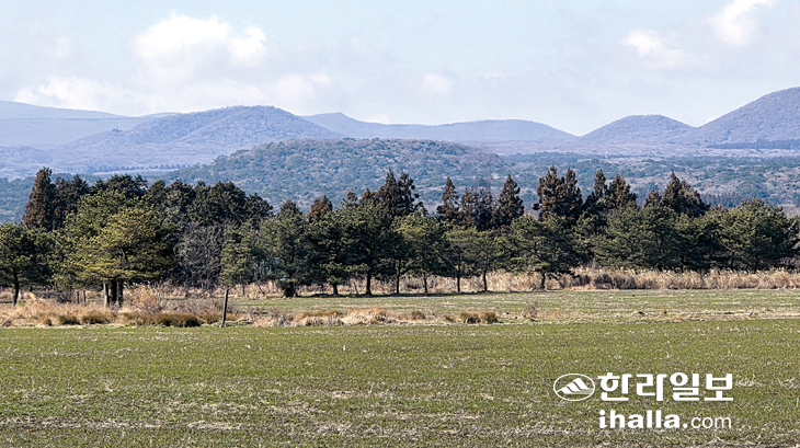 | 마은이 혹은 마흐니로 불리는 오름과 그 뒤로 물오름이 보인다. 김찬수 |