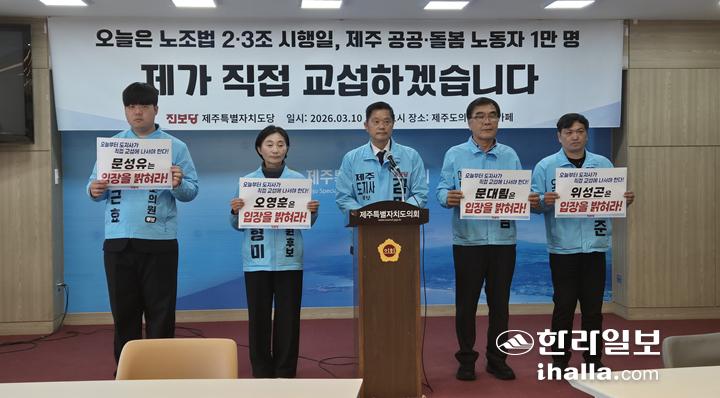 [한라일보] 노조법 2·3조 개정안 시행 날을 맞아 김명호 진보당 제주특별자치도지사 예비후보가 10일 제주도의회 도민카페에서 기자회견을 열고 "제주에서 공공부문 직접교섭 모델을 만들겠다"고 밝혔다.