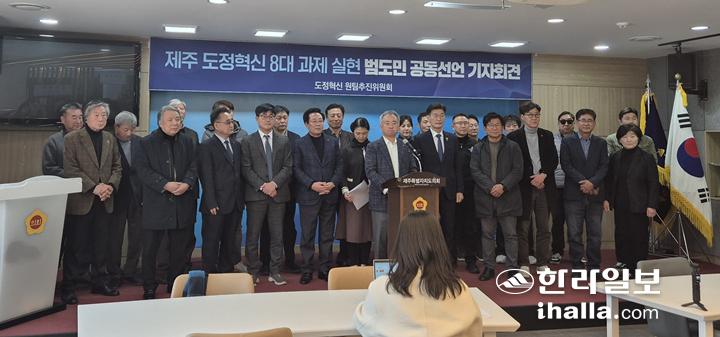 이날 기자회견은 도정혁신 원탁추진위원회(이하 추진위)가 제주 현안 해결과 미래 전략을 위한 정책 과제를 제시하기 위해 마련됐다.