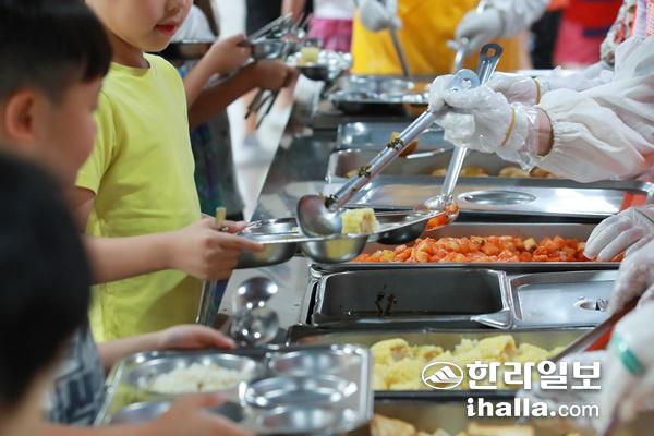 [한라일보] 올해부터 전국 최초로 제주에서 학교 급식종사자의 '상시 근로'가 시행되고 있지만, 올 여름방학에도 초등학교 돌봄 현장에선 급식 대신 '도시락'으로 점심을 해결하는 일이 계속될 것으로 보인다. 제주도교육청은 사전에 노사 협의가 원만히 이뤄진다면 조만간 '돌봄 급식'이 가능할 수 있다며 여지를 남겼지만, 입장 차가 워낙 큰 상황이라 최종 합의까진 갈 길이 멀다.