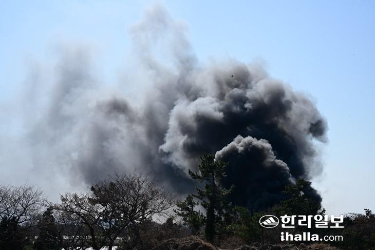 [한라일보] 제주시 한림읍의 한 야적장에서 화재가 발생했다.