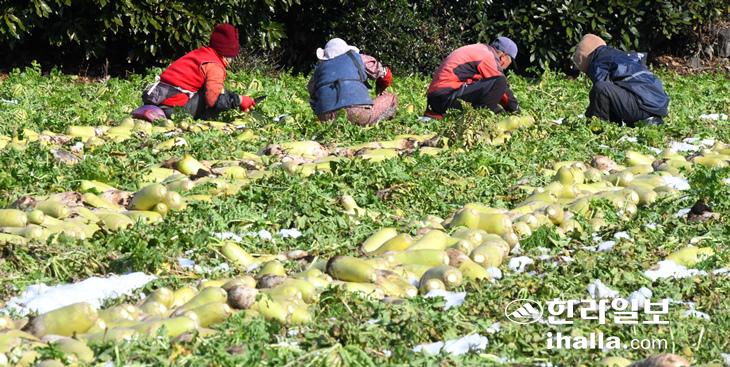 [한라일보] 재배면적 증가로 가격이 하락하고 있는 제주산 월동무에 대해 정부비축사업이 추진된다.