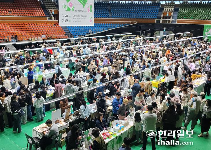 29일 제주시 한라체육관. 탐라도서관이 주최·주관하는 '2026 제주북페어'(3월 28~29일) 둘째 날인 이날 한라체육관은 관람객들로 북적였다.