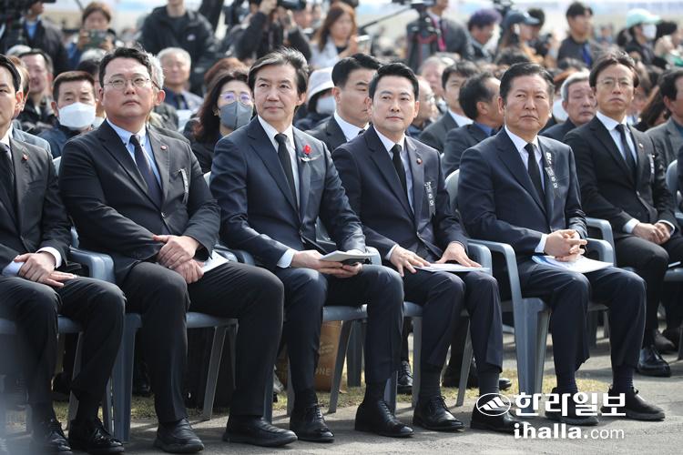 이준석 개혁신당 대표를 대신해 추념식에 참석한 천하람 원내대표는 "개혁신당은 동백의 아픔을 잊지 않고 정치하려는 정당"이라고 강조했다.