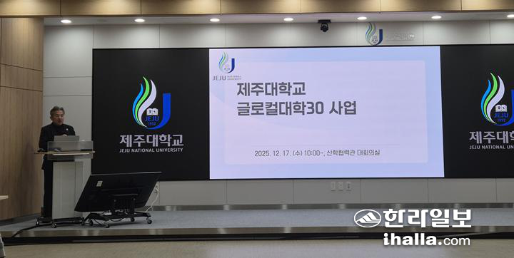 지난 12월 17일 제주대 산학협력관 1층 대회의실에서 제주대 글로컬대학30 추진 계획이 발표되고 있다. 한라일보 DB