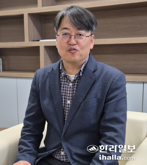 제주대 글로컬대학사업단장인 강주영 기획처장이 지난 7일 기획처장실에서 본보와 인터뷰하고 있다. 김지은기자