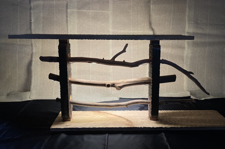 이 작가는 저마다의 형태를 지켜온 유목에 새 생명을 불어넣는다. 수집한 나뭇가지가 지닌 거친 질감을 살리면서 각자가 살아가는 삶을 비추듯 은은한 빛을 더했다.