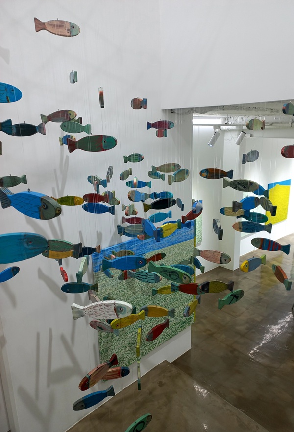 그는 이번 개인전에 자발적으로 고독을 택한 일상의 삶을 담아낸 '고독하기(Solitude)'를 주제로 작업한 작품을 내놓았다. 주제를 구현한 동명의 평면 작업인 '고독하기' 연작, 나무 물고기 162마리가 바다를 헤엄치는 듯한 입체 작업 '유영' 등을 볼 수 있다.