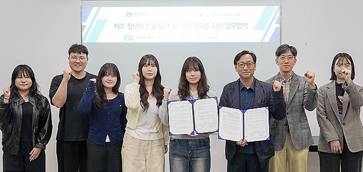 제주사회적경제네트워크(대표 강호진)는 지난 13일 제주한라대학교 제41대 총학생회 '다온'(회장 고나윤·부회장 현황빈)과 도내 청년의 진로 탐색과 안정적인 사회 진출을 돕고 청년과 함께 성장하는 사회분위기 조성을 위한 업무협약을 체결했다.