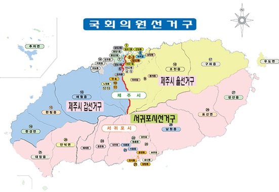 제주지역 국회의원 선거구. 제주자치도선거관리위원회 제공