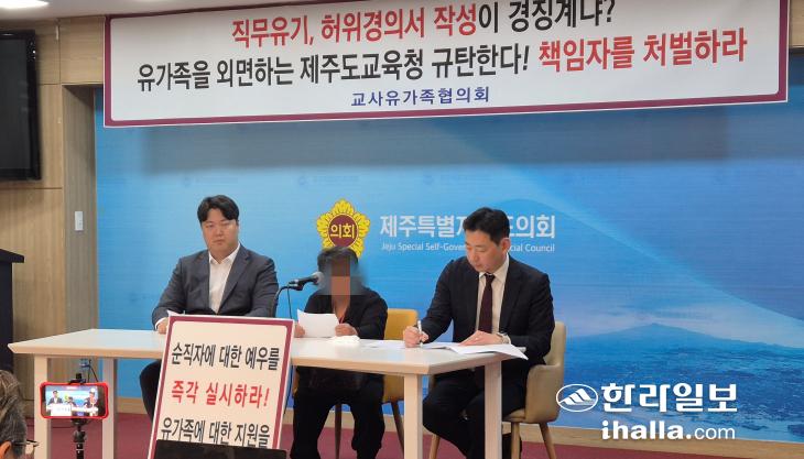 교사유가족협의회와 사망 교사의 유가족은 24일 제주도의회 도민카페에서 기자회견을 열고 "제주도교육청은 즉각 폐쇄적인 진상조사 결과를 폐기하고, 외부 전문가가 참여하는 독립적 진상조사위원회를 구성하라"고 촉구했다. 도교육청이 지난 12월 발표했던 진상조사 결과가 내부 인원만으로 내놓은 "부실 '셀프 조사'"였다며 "유족 추천 인사와 교육부, 노동부 등 상급기관과 협력해 철저히 조사해야 한다"는 주장이다.