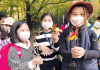 유채꽃밭서 제주의 겨울 즐기는 관광객들