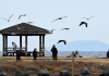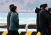 제주 찬바람에 잔뜩 움츠린 관광객들