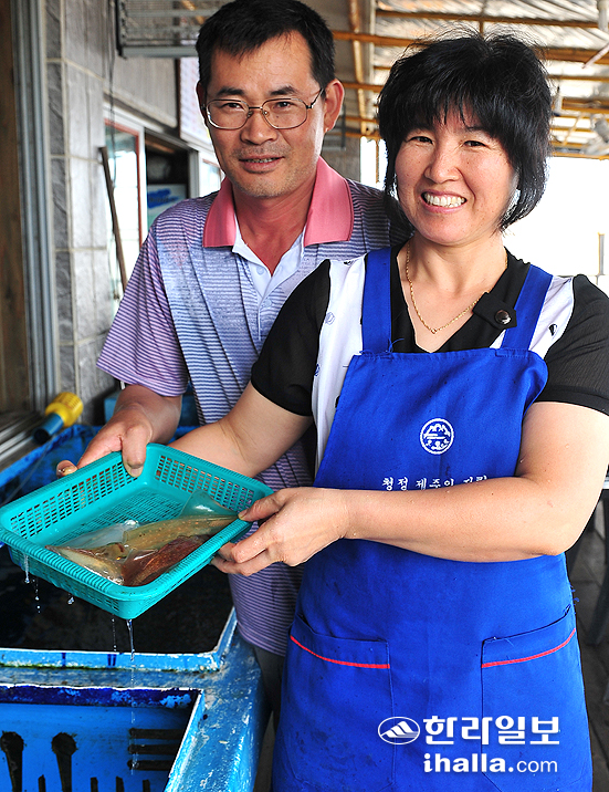 쫄깃쫄깃하게 씹히는 맛이 일품인 한치는 아직 철이 좀 이르다. 하지만 서둘러 한치물회가 맛있는 집을 수소문하던 차에 마침 주인장 김정수(50)·강미애(47)씨 부부로부터 한치가 들어왔다는 연락을 받았다.