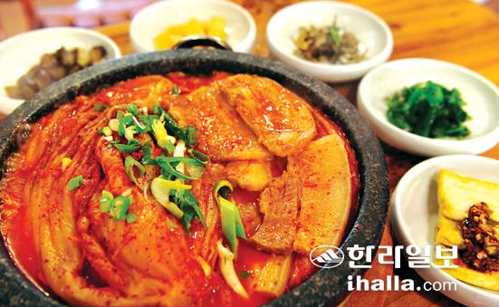 ▲순이네 식당의 주메뉴인 김치찜. 1년 가량 묵힌 시큼한 묵은지와 돼지고기 맛이 곁들여져 손님들의 주문이 끊이질 않는다. /사진=이승철기자 sclee@ihalla.com