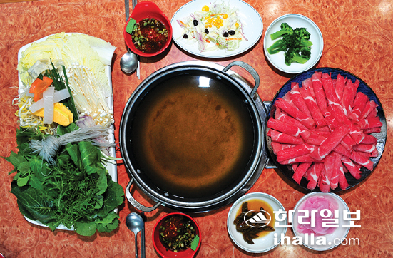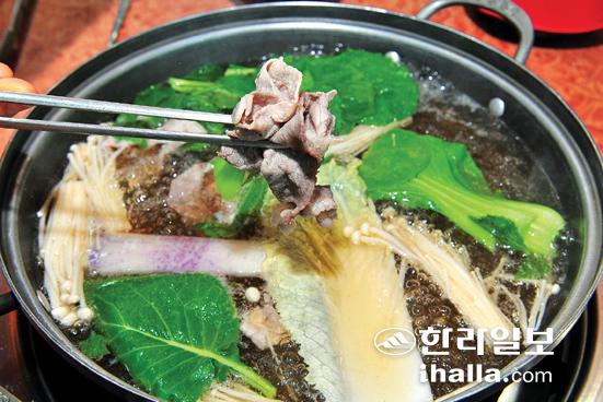 옷깃을 올리게 하는 추운날, 따뜻한 국물이 먹고싶어진다. 씹는맛이 더해지고 많이 먹더라도 속이 더부룩하지 않은 메뉴라면 더욱 좋다. 팔팔끓는 국물에 갖은 야채와 고기를 익혀먹는 샤브샤브가 그만이다. 게다가 저렴하면서도 재료의 독특함이 더해진다면 겨울진미가 따로없을 터이다.
