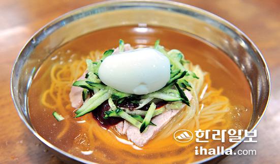 ▲산방식당은 30여년간 밀면과 돼지고기 수육만으로 손님 입맛을 사로잡은 맛집으로 이름을 알리고 있다. 시원한 국물맛과 쫄깃한 돼지고기에는 식당 주인장만의 노하우가 숨어 있다. /사진=강경민기자