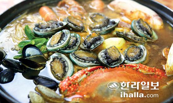 ▲서귀포시 서호동 솔방울식당이 자랑하는 해물전골 /사진=이현숙기자