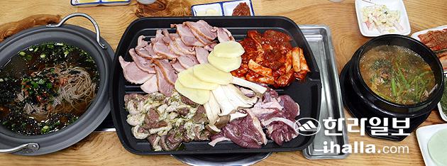 ▲오리고기는 몸속에 쌓인 독을 해독하거나 중화하면서 원기를 북돋워주는 음식으로 알려져 있다. 서귀포시에 소재한 명가식당은 '골라먹는 4색 오리고기'를 표방한 오리 전문점이다. 이현숙기자