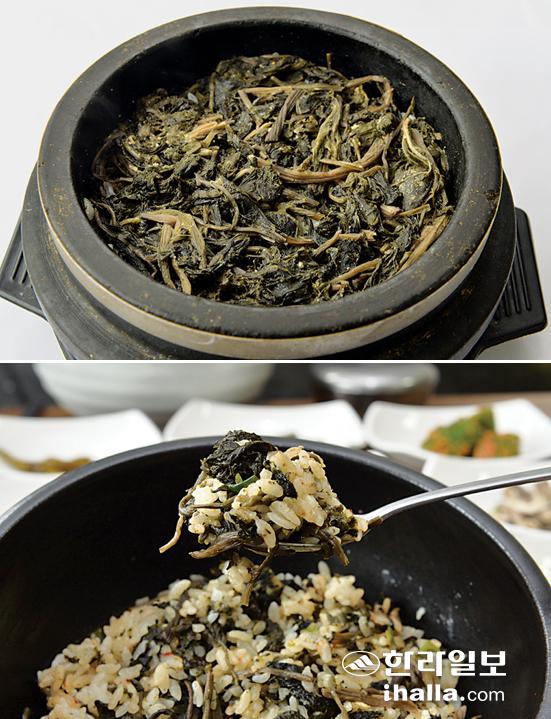 ▲강원도 정선의 대표적 산나물인 곤드레나물로 지은 곤드레돌솥밥은 웰빙식으로 인기가 많아진 음식이다. 양념장에 쓱쓱 비벼먹으면 담백한 맛과 은은한 향이 입안 가득 퍼진다. 강경민기자