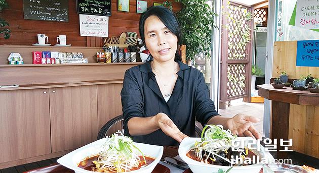 "해장에 아주 좋죠. 라면 스프는 반으로 줄이는 대신에 새우를 갈아 새우젓과 청양고추를 넣어 다대기를 직접 만들었어요. 전복해물라면을 먹기 위해 아침부터 가게를 찾는 올레꾼들도 많아요. 인터넷으로 보고 직접 찾아오시는 분들도 많고요."